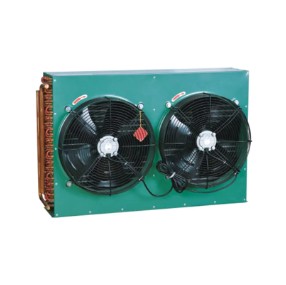 Den mest brukte typen globalt. Omgivelsesluft presses over ribbespiraler av en eller flere vifter. Ingen vanninfrastruktur er nødvendig , noe som gjør installasjonen enkel og vedlikeholdskostnadene lave. Brozercools luftkjølte kondensatorserie bruker høyeffektive kobberrørs-aluminiumspoler med EC-viftemotorer, og oppnår spesifikke varmeavvisningshastigheter over 1,8 kW/m².